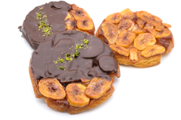 表面にコーンフレークを付けて焼成トレーに入れる。 - ホイロ:35℃/85% 40分~